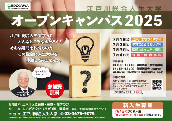江戸川総合人生大学事務局(03-3676-9075)へお問合せください。