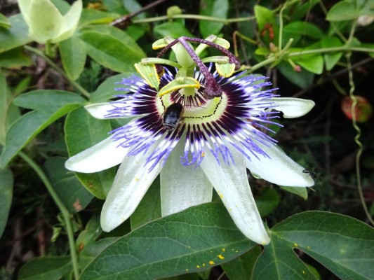 - 葛西臨海公園・鳥類園の磯の小路の石垣に咲いていたトケイソウです。トケイ