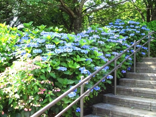 - 葛西臨海公園の駅前中央通りの両側の階段にアジサイがあり、よく手入れさ