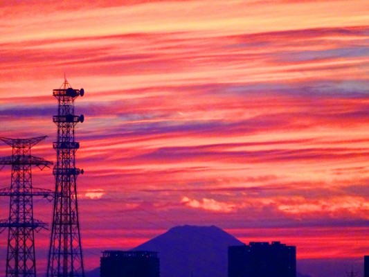 - 10月29日に、日が落ちた後の富士山の方向に、筋状のとてもきれいな夕焼