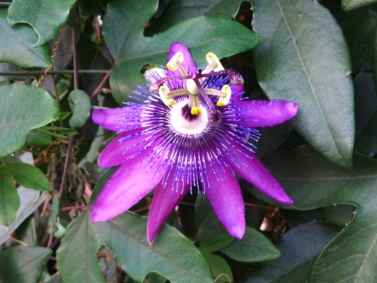 - 宇喜田公園のハーブ園に近い民家に紫色のトケイソウが咲いていました。