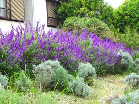 - ハーブ園には紫色のハーブが満開に咲いていました。ハーブの名前はアメジスト