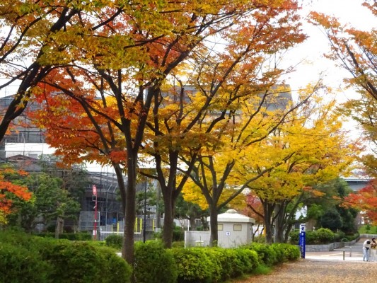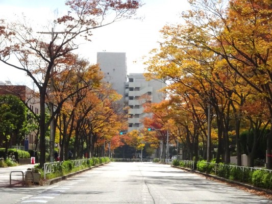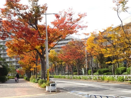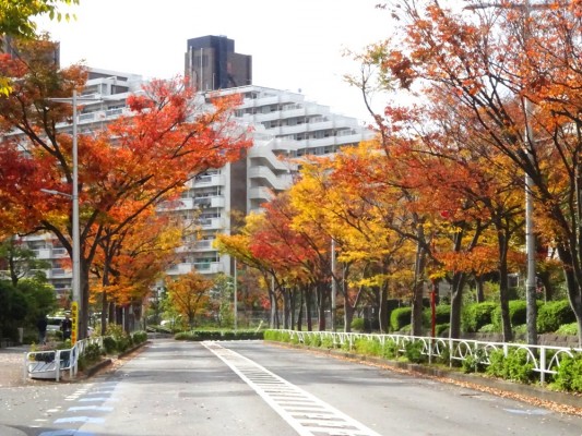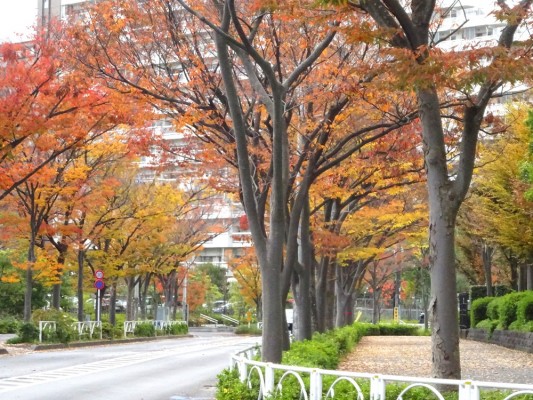 清新町一丁目一番地のエリアを囲んでいる道の両側はケヤキ並木です。11月