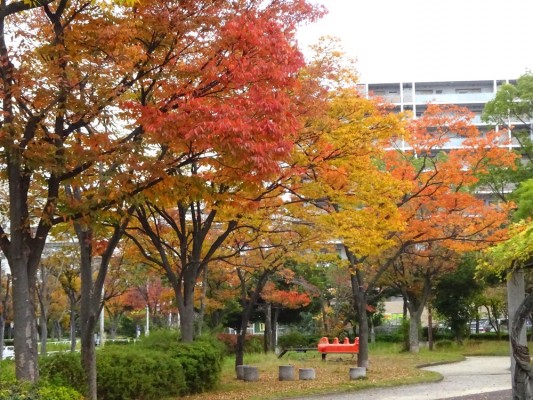 16日に清新町に用事があり、その帰りにこのケヤキ並木の紅葉を見て帰りま