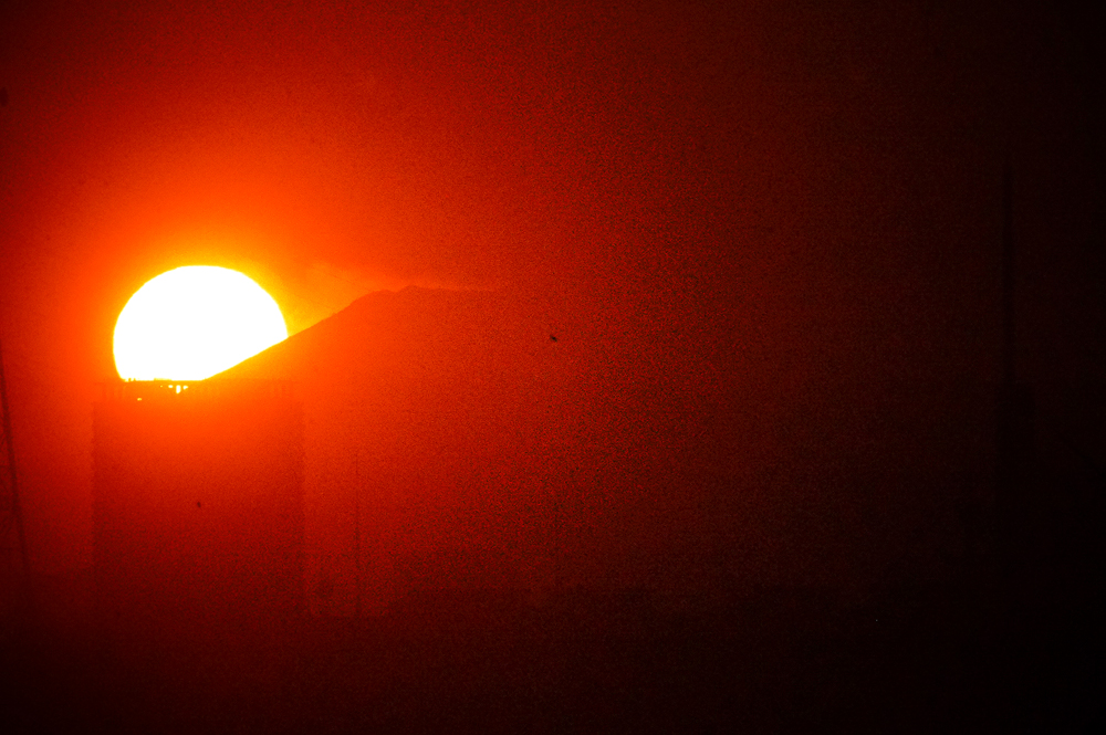 あって残念ながら富士山は見えませんでした。13日は富士山山頂の右端に落日で。太陽の下の部