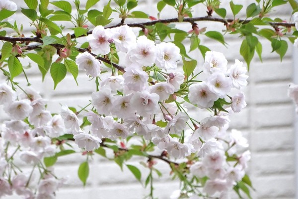 - 小江戸橋の橋際にはヤエベニシダレ(八重紅枝垂)があり、綺麗に咲い
