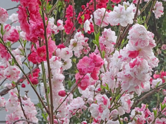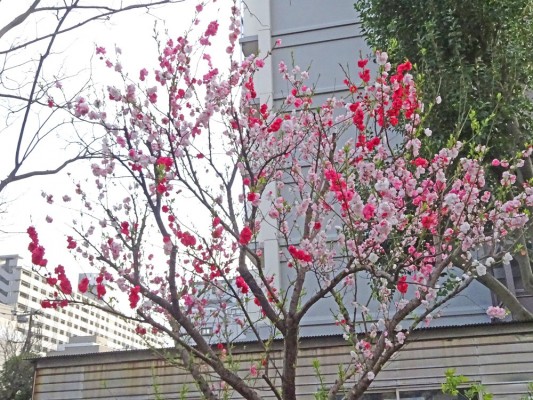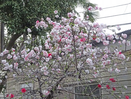 - 3月30日に西葛西の集合住宅の敷地のゲンペイモモ(源平桃)が咲き始めて