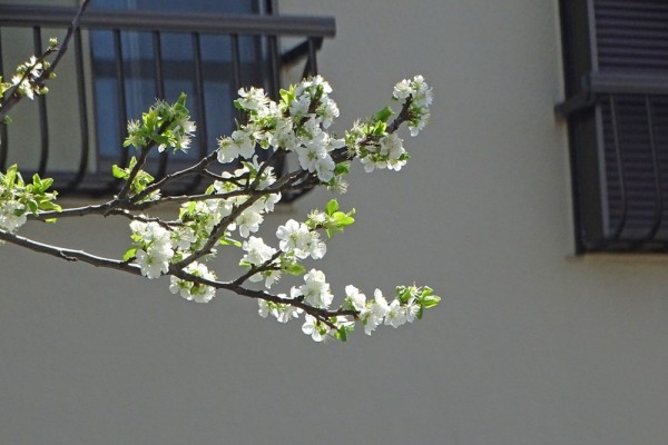 - 新川の忍者橋の近くにプラムの樹があり、満開でした。最初見たときには何の