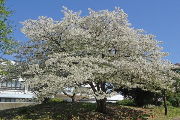 - 宇喜田公園のハーブエンに大きなオオシマザクラがあり、満開でした。これだ